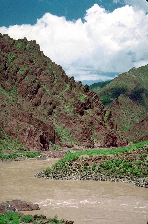 S of the city of Changdu (Qamdo) on road (highway 214) to Bangda along the Lancang Jiang (Mekong River).
