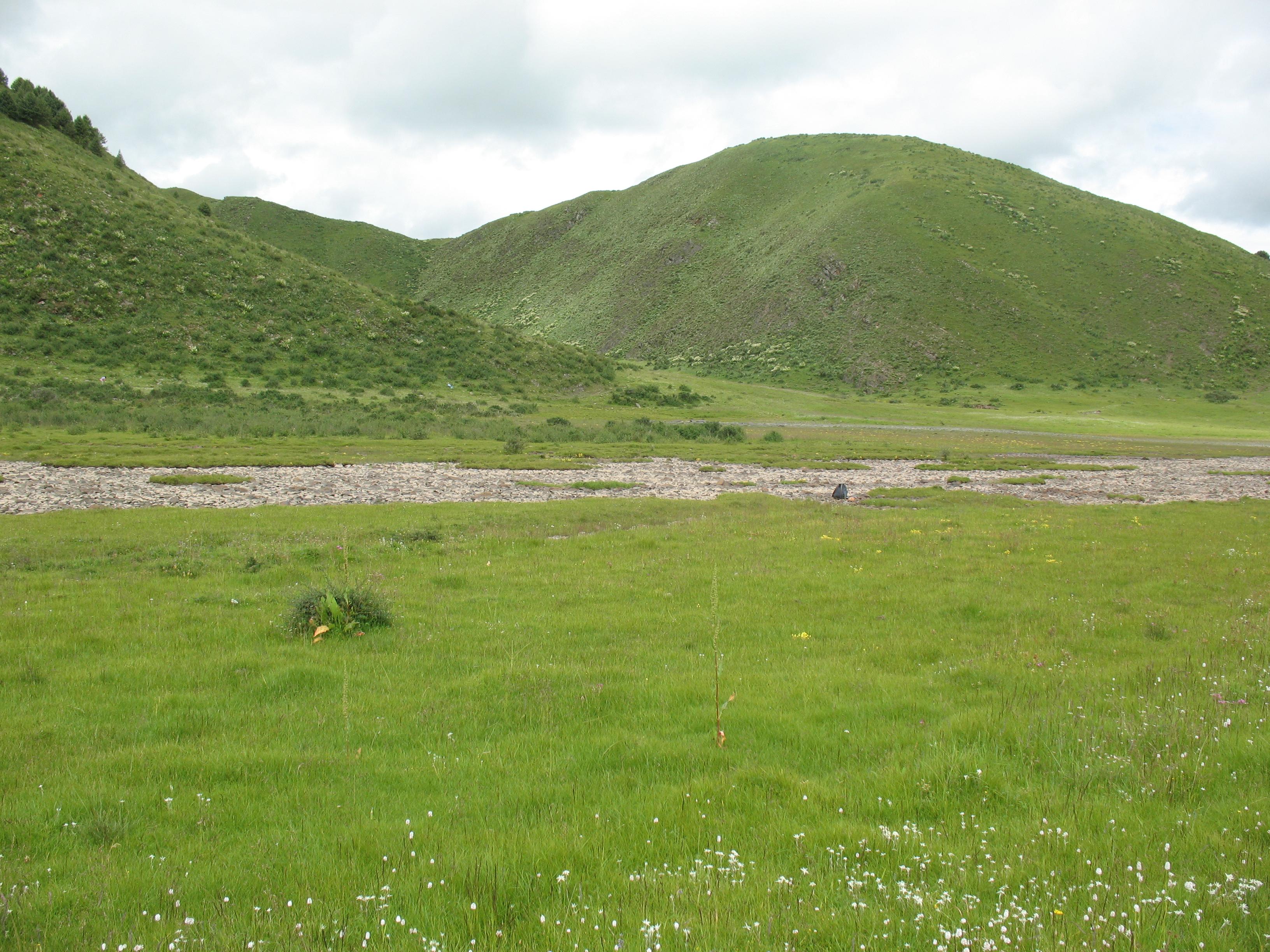 Sichuan:Rangtang (Zamtang) Xian. N of the city of Rangtang (Zamtang) on road to Aba Xian, then E on road to Zhong Rangtang along Maierdi-anma (river), then S along stream ca. half way to Chotuo. 3570-3730 m elevation.
