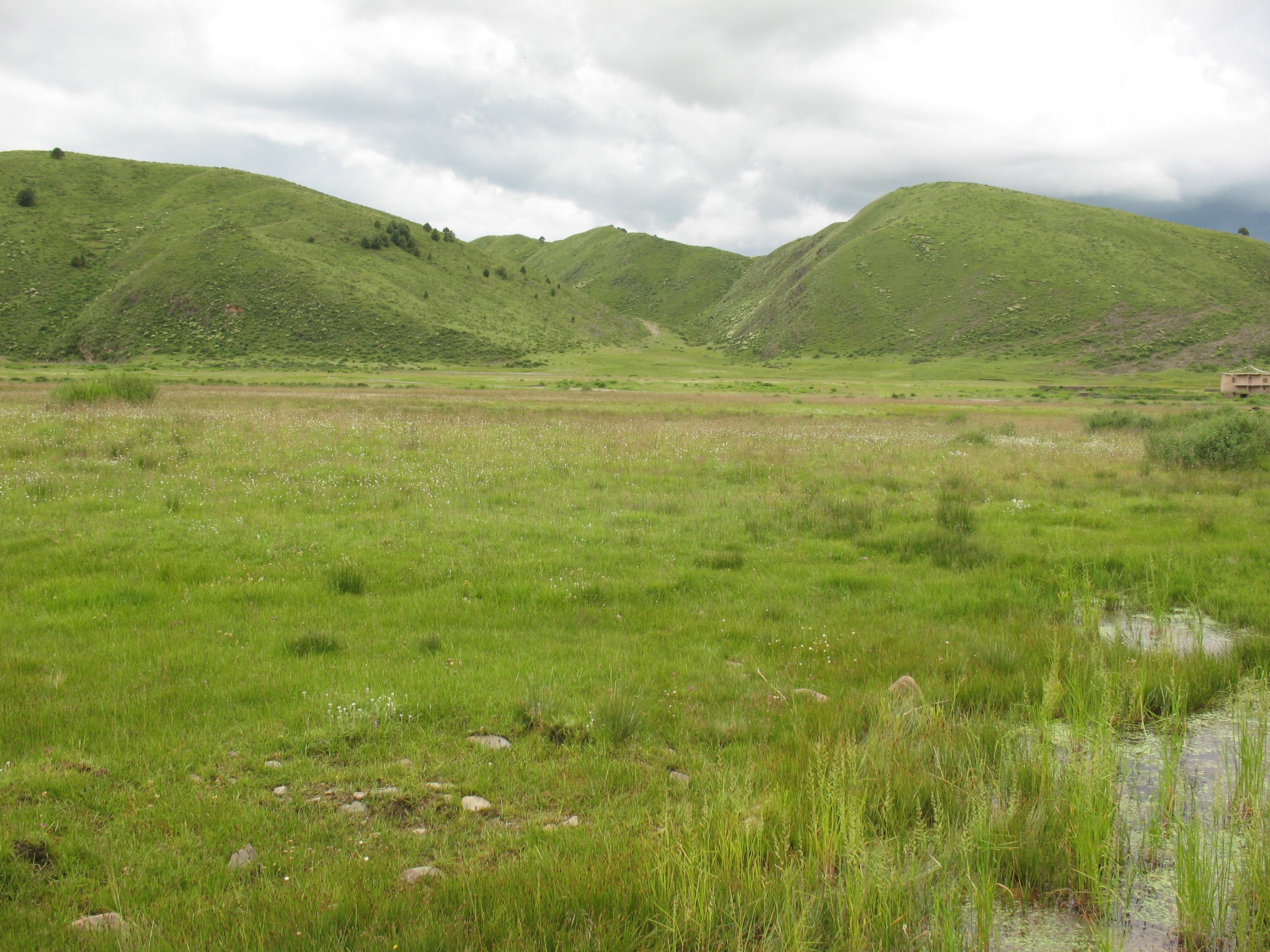 Sichuan:Rangtang (Zamtang) Xian. N of the city of Rangtang (Zamtang) on road to Aba Xian, then E on road to Zhong Rangtang along Maierdi-anma (river), then S along stream ca. half way to Chotuo. Broad, flat valley with a network of meandering rocky streams and marshy places, adjacent meadow, slopes with shrubs and outcropping ledges. 32°15'23"N, 101°11'39"E; 3570-3730 m.