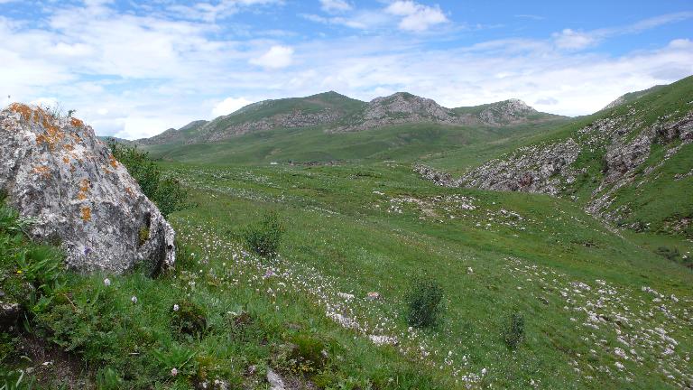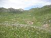 Meadow dominated by Kobresia, Bistorta macrophylla and P. tubistipulis, Saussurea subulisquama and S. tatsienensis and with Anaphalis xylorhiza, Pedicularis cranolopha, P. integrifolia and P. lachnoglossa.
