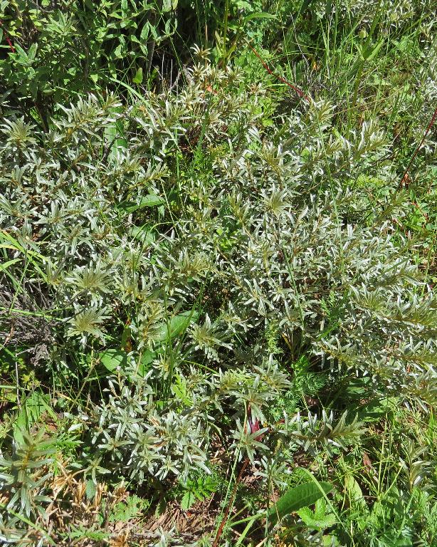 Qinghai: Nangqen Xian. Yushu Zangzu Zizhizhou; ca. 15-20 km E of the town of Nangqen along the Za-Qu (Za River) in Shixia Gou. West facing ravine over limestone with sparse Juniperus (Sabina) on slopes and shrub vegetation on level areas along stream. 31°53'37"N, 96°35'46"E; 4100-4200 m.