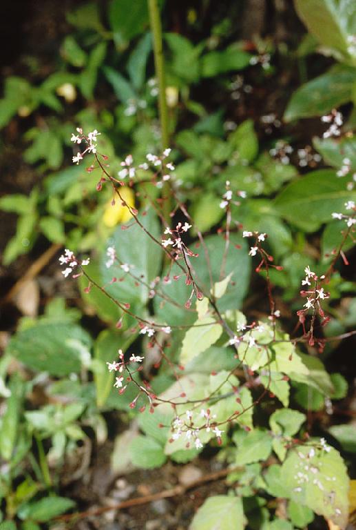 Woods and bamboo thickets, sometimes with C. alpina subsp. imaicola. Colonial plants; stems and leaves somewhat purplish; flowers opening on spreading pedicels, not clustered at apex of inflorescence; petals white or slightly pink.