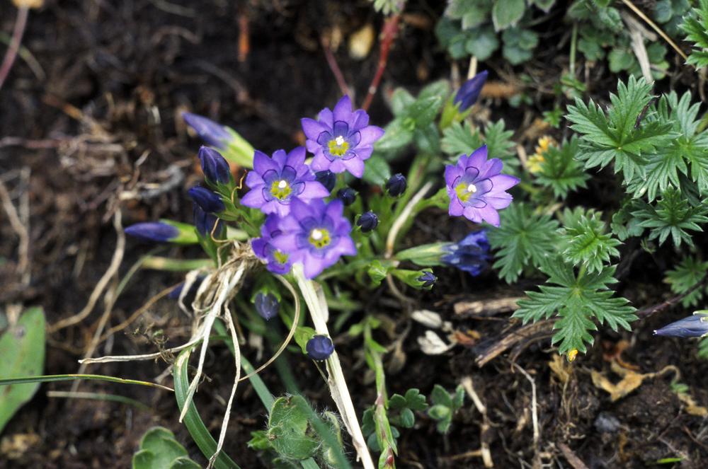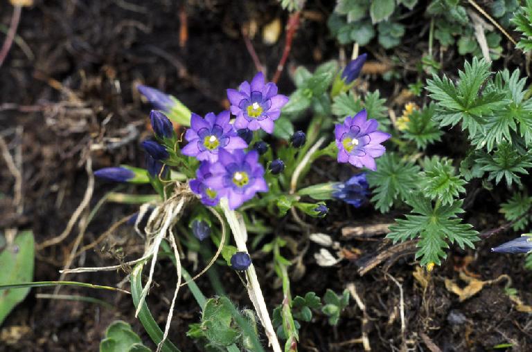 Corolla blue or purple, with a dark, arching line at base of petals.
