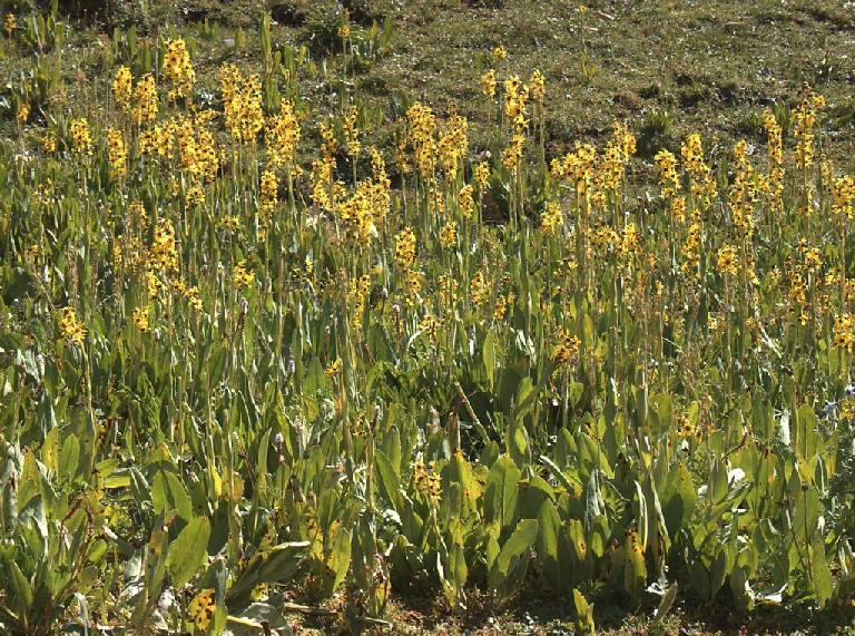 Shallow ravine with shrubby slopes interspersed with Kobresia dominated open spaces and exposed soil; rocky slopes above 4750.