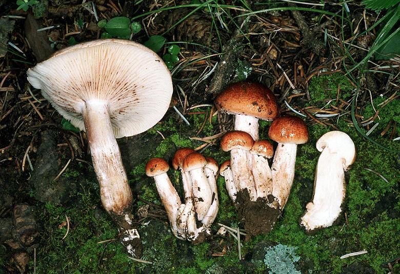 Same as sold in Kangding and elsewhere, solitary-cespitose, pileus red, convex, viscid, less than 4", no veil, hymenophore attached, stipe gills white, tinged red, see photo.