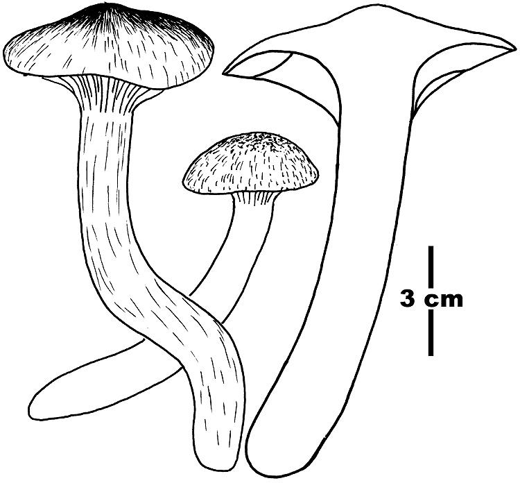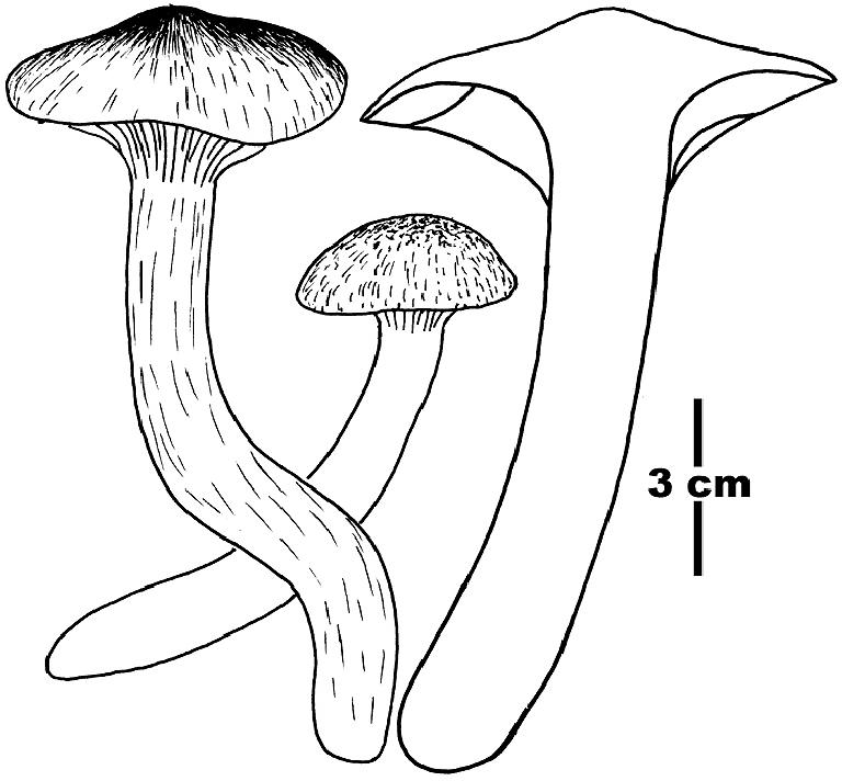 Fruit body 0.5-1 cm in diam., 0.5 cm thick, rugose, dark purplish orange.