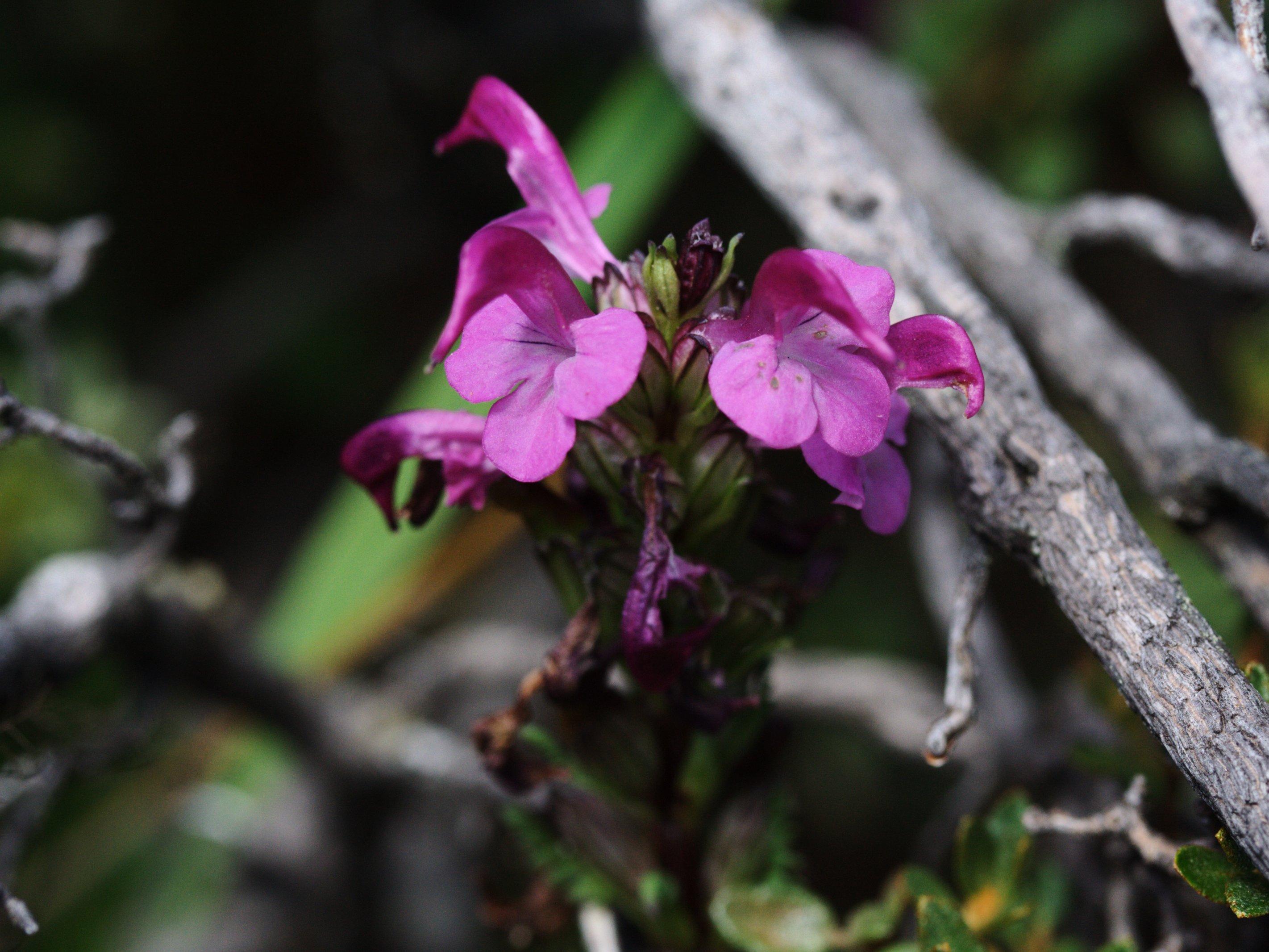 Corolla reddish purple, lower lip with darker lines.