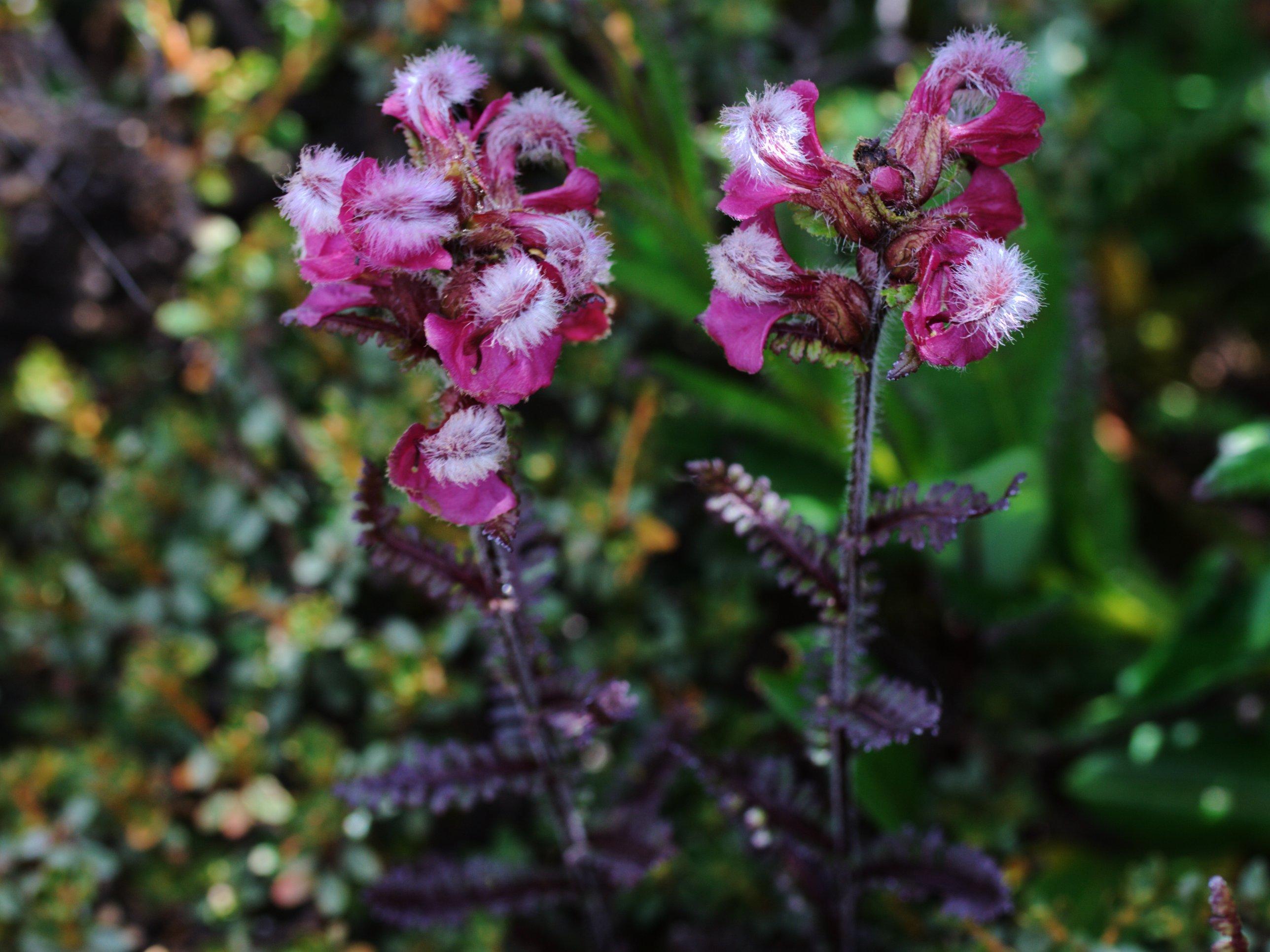 Growing up through Rhododendron.Plants purple throughout; calyx green; corolla purple.