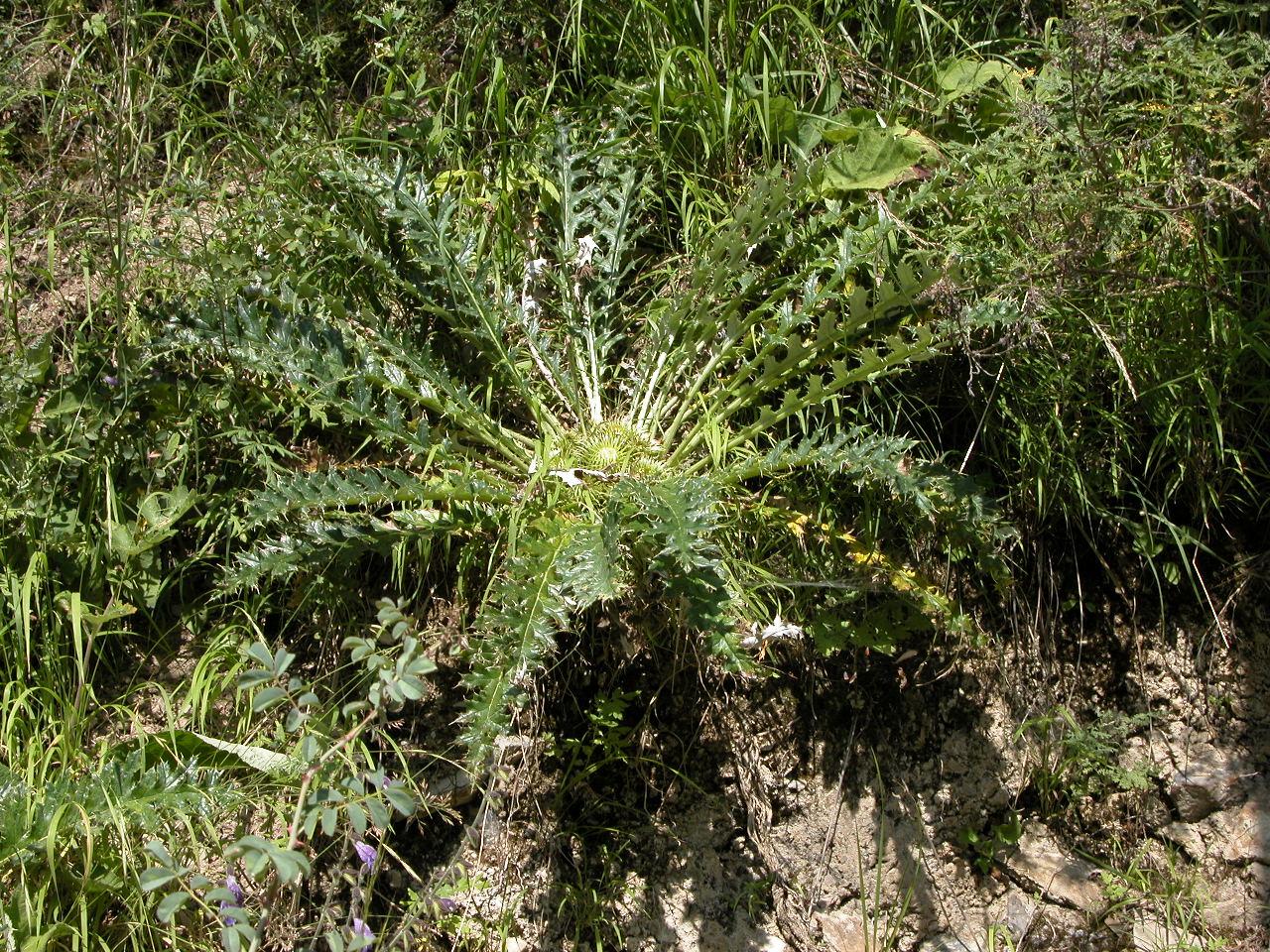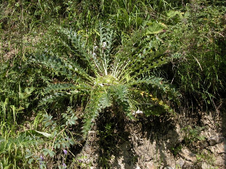 On dry, sun-baked slope.Coarse herb ca. 50 cm in diam.; involucral bracts green; pappus white or yellow.