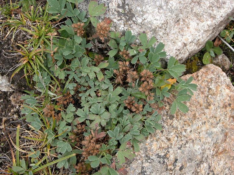 Fruit green, turning brown. Petals much shorter than sepals. Initially identified as Sibbaldia cuneata Hornemann ex Kuntze.