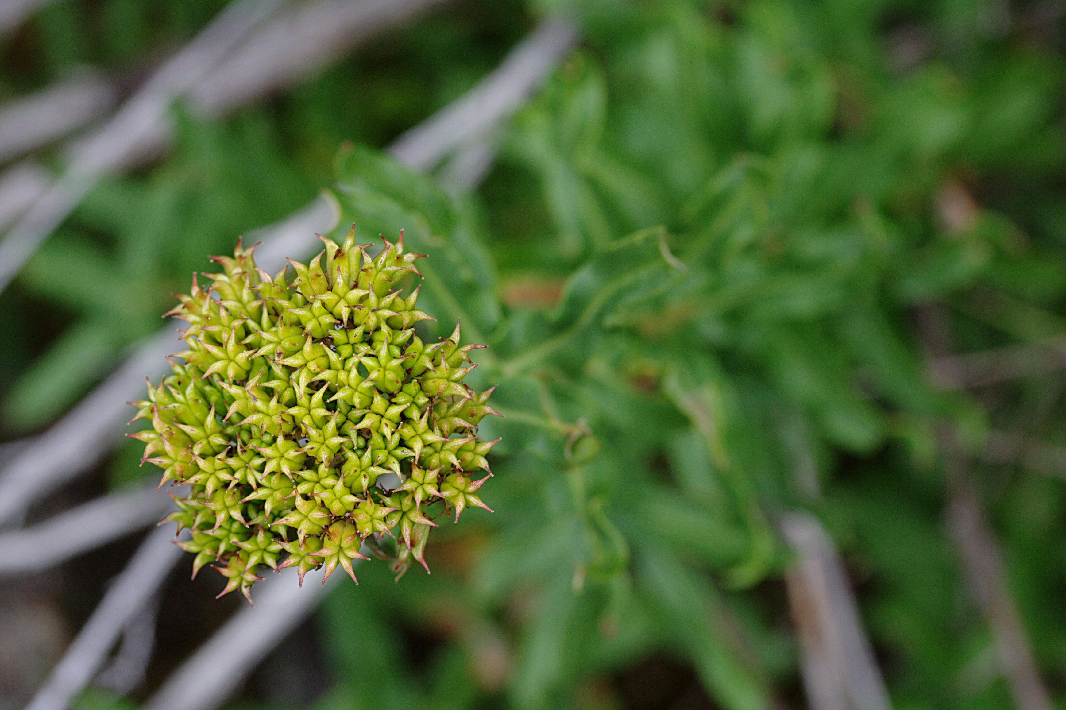 Fruit green, tinged red.