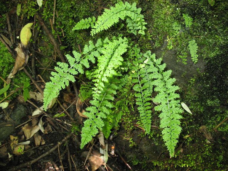 On moist, moss covered boulders.Stipes and rachis green.