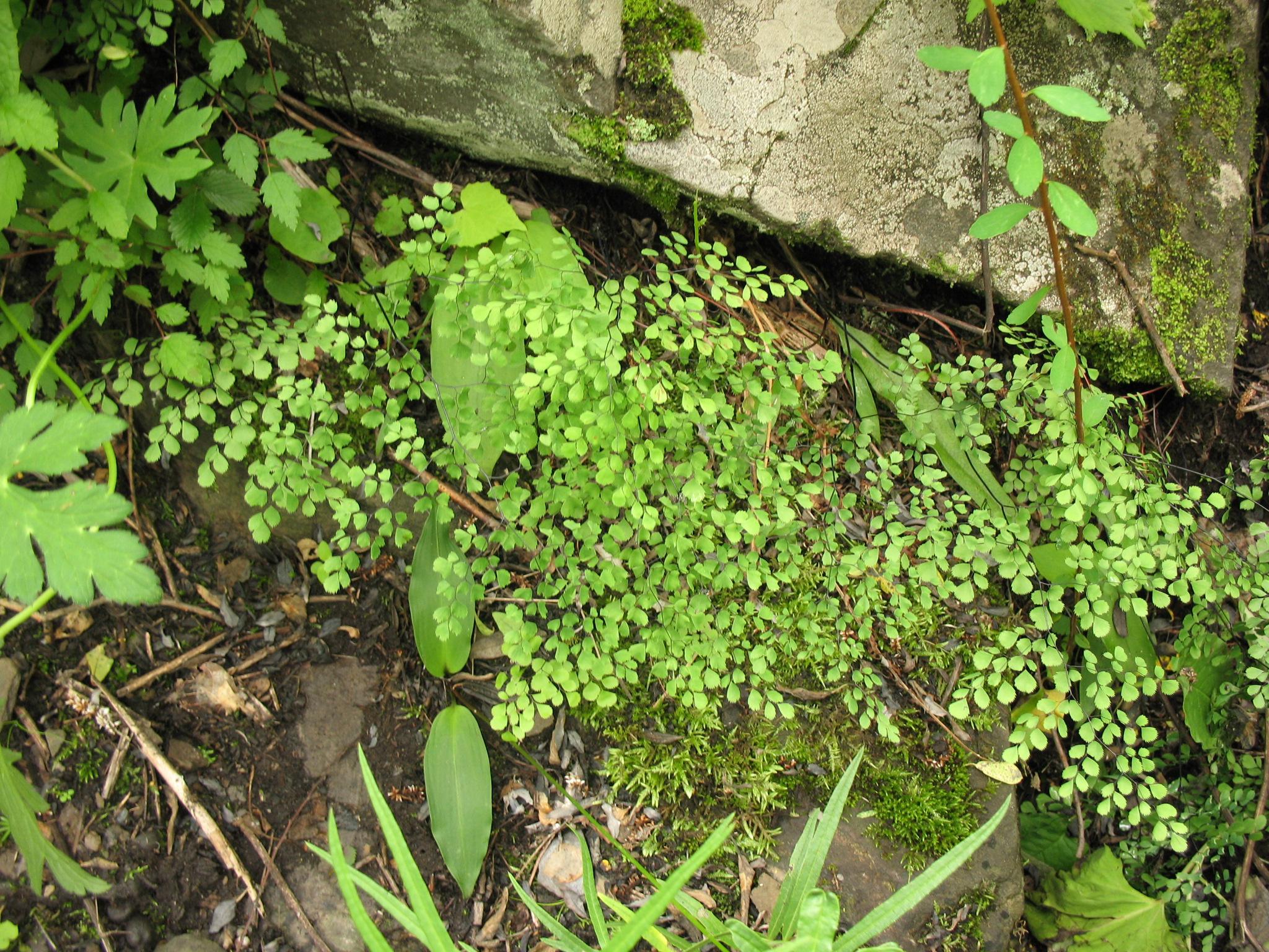 On slope under shrubs.