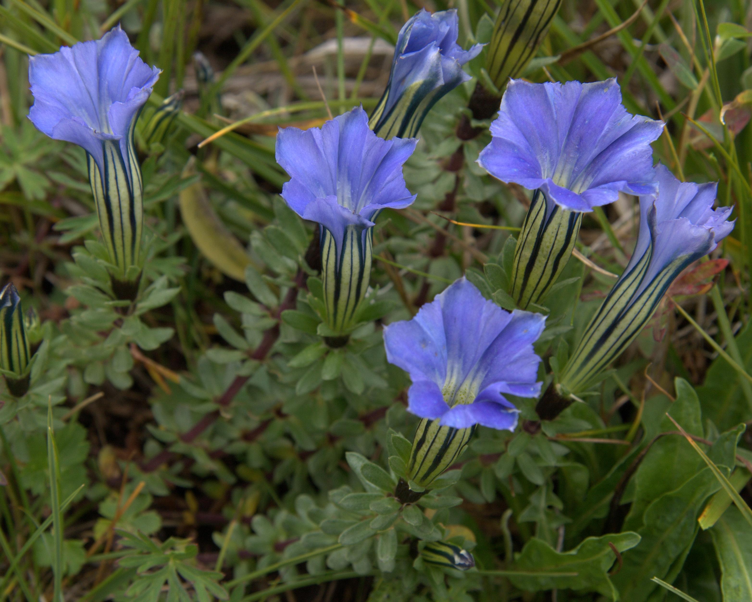 Meadow.Corolla pale bluish purple, plaits outside with green and blue valvate markings.