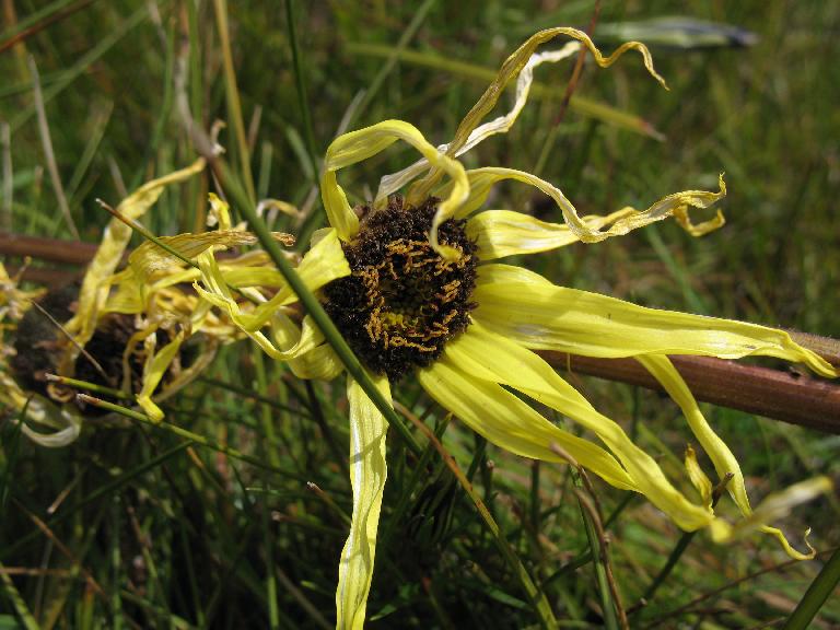 Wet meadow and base of hummocks. Stems to 1 m tall; involucral bracts green, base dark brown; ray florets pale yellow; disc florets brownish yellow; anthers brown.