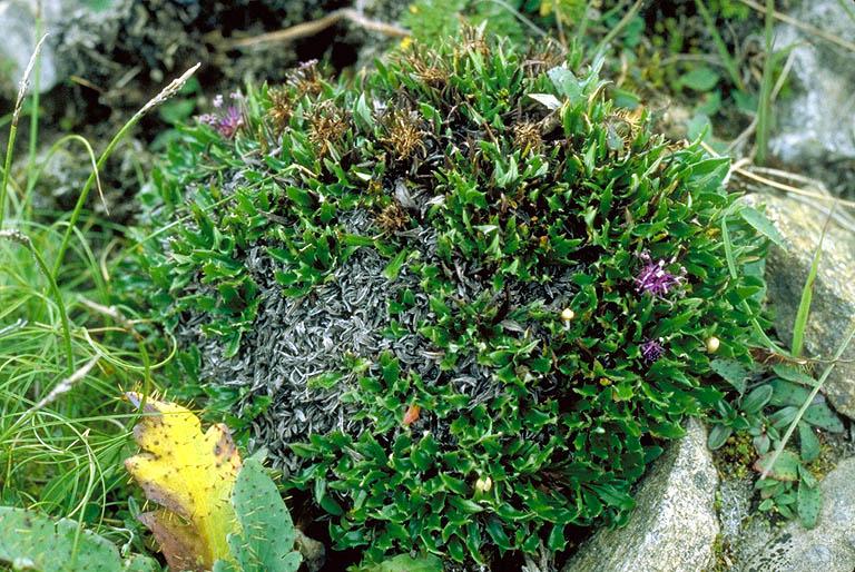 Cushion plant; florets purple; anther tube dark blue.