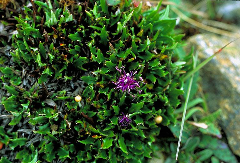 Cushion plant; florets purple; anther tube dark blue.