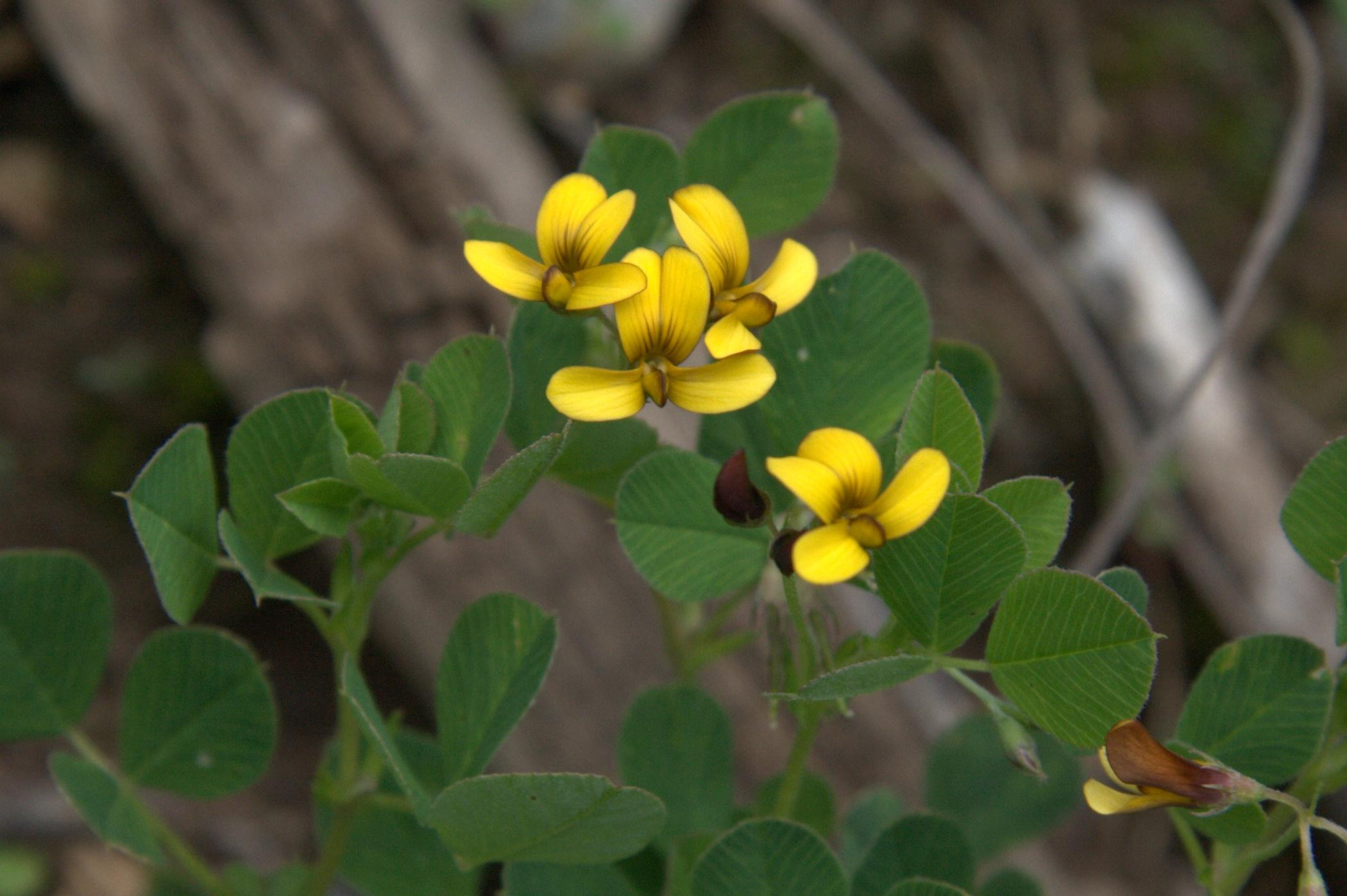 On slope in open.Dense patches; petals abaxially brownish red, adaxially yellow. [Synonym = Medicago archiducis-nicolai Širjaev].