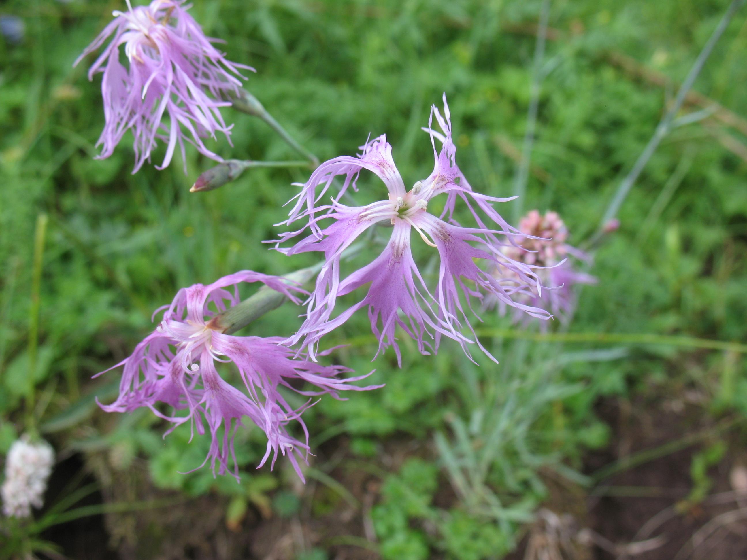 Edge of slope in sun or shade.Sepals green, petals pink.