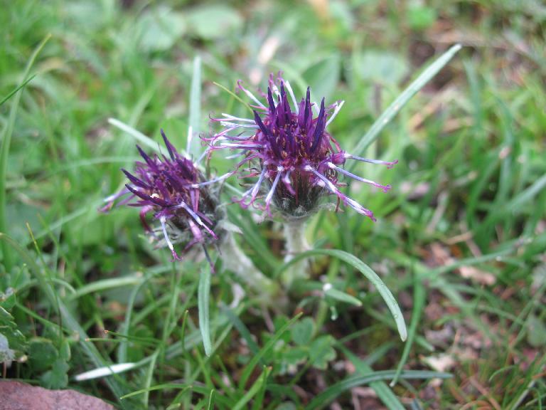 In meadow and sometimes growing up through shrubs.Florets purple; anther tube bluish purple; stigmas purple.